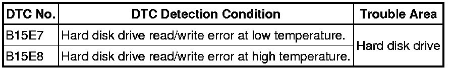 AUDIO / VIDEO: AUDIO AND VISUAL SYSTEM (for Radio and Display Type with Intuitive Parking Assist System): B15E7, B15E8: Harddisk Reading/Writing Malfunction(Low Temperature)