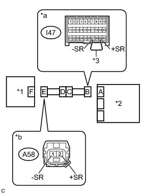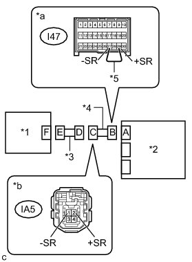 (b) Using a service wire, connect terminals 29 (+SR) and 27 (-SR) of connector B.