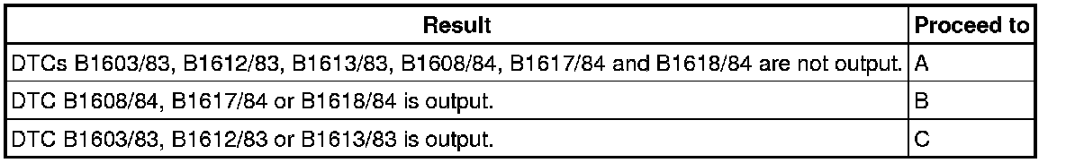 Codes other than DTCs B1603/83, B1612/83, B1613/83, B1608/84, B1617/84 and B1618/84 may be output at this time, but they are not related to this check.