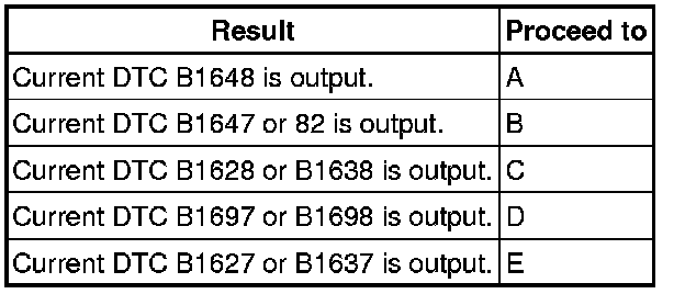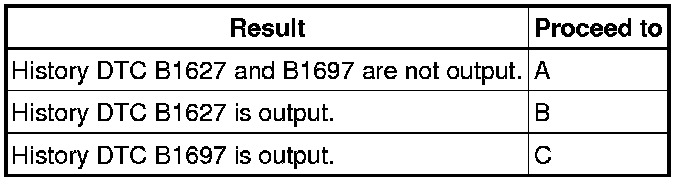 * Codes other than current DTCs B1627, B1628, B1637, B1638, B1647, B1648, B1697, B1698 and 82 may be output at this time, but they are not related to this check.