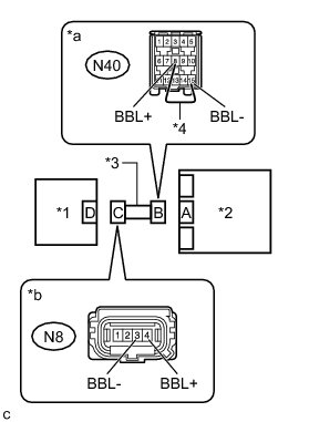 (a) Using a service wire, connect terminals 8 (BBL+) and 15 (BBL-) of connector B.
