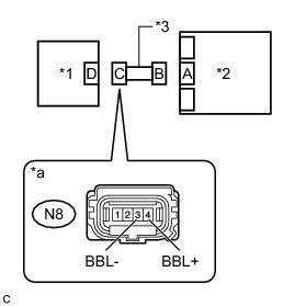 (a) Using a service wire, connect terminals 4 (BCL+) and 3 (BCL-) of connector C.