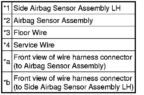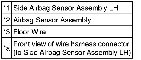 The side collision sensor LH circuit (to determine deployment of the front seat airbag assembly LH, rear seat airbag assembly LH, curtain shield airbag assembly LH and front seat outer belt assembly LH) is composed of the airbag sensor assembly, side airbag sensor assembly LH, side No. 2 airbag sensor assembly LH and door side airbag sensor LH.