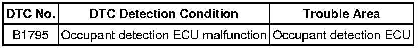 DTC B1795 is stored when a malfunction is detected in the occupant detection ECU.