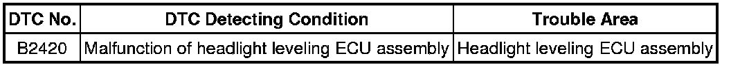 LIGHTING (EXT): AUTOMATIC HEADLIGHT BEAM LEVEL CONTROL SYSTEM: B2420: HL Auto Leveling ECU Failure