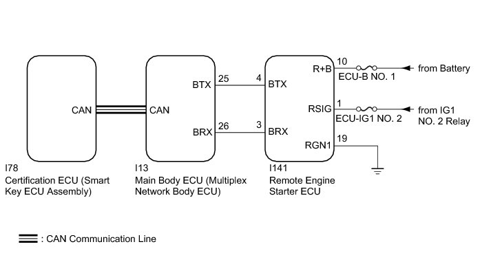 * The remote engine starter system uses the CAN communication system. Inspect the communication function by following How to Proceed with Troubleshooting How To Proceed With Troubleshooting. Troubleshoot the remote engine starter system after confirming that the communication systems are functioning properly.