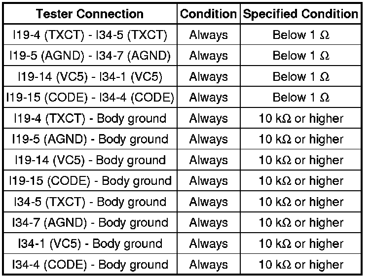 (c) Measure the resistance according to the value(s) in the table below.