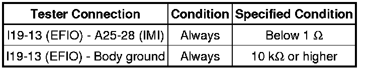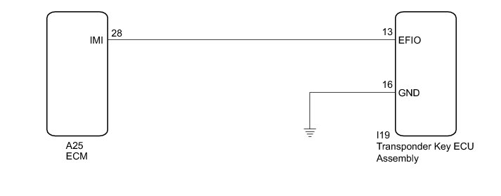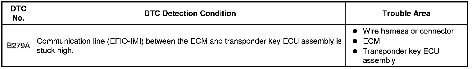 If the communication line (EFIO-IMI) to the transponder key ECU assembly is stuck high (e.g. shorted to +B), the ECM stores this DTC.