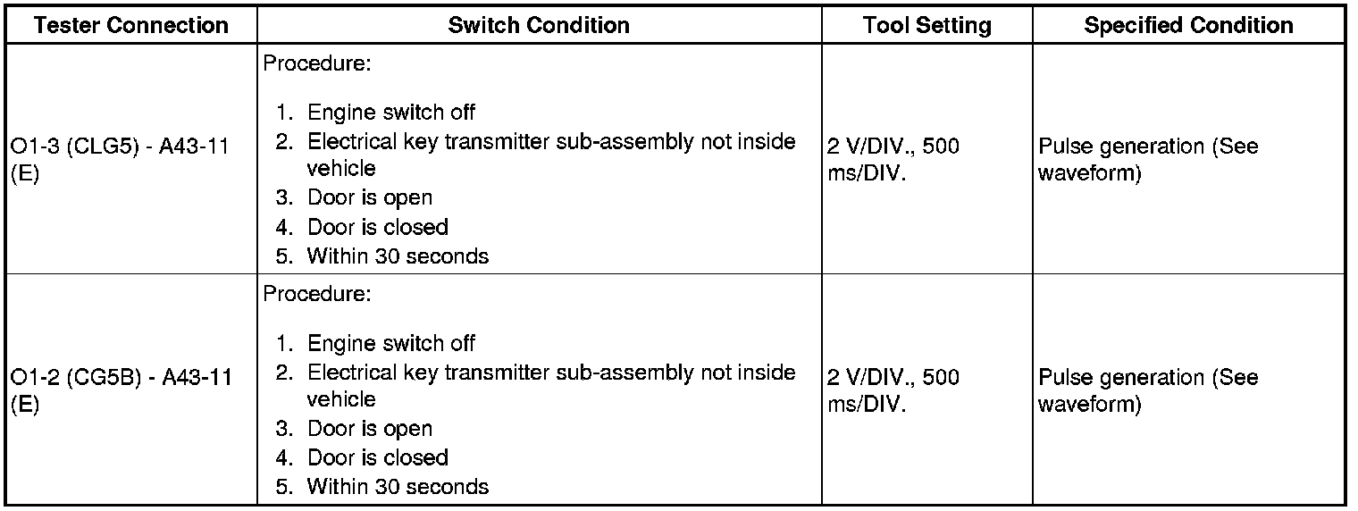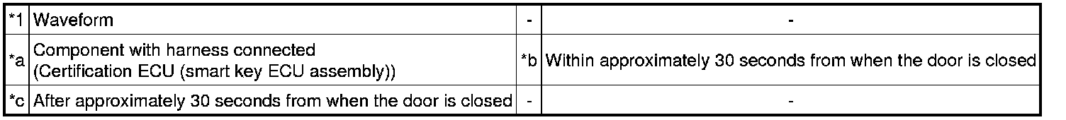 * The smart key system (for Entry Function) uses a multiplex communication system (LIN communication system) and the CAN communication system. Inspect the communication function by following How to Proceed with Troubleshooting How To Proceed With Troubleshooting. Troubleshoot the smart key system (for Entry Function) after confirming that the communication systems are functioning properly.