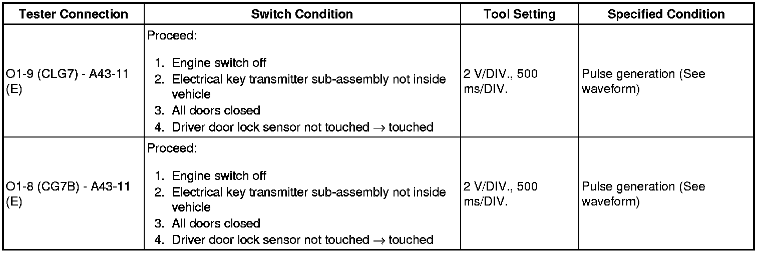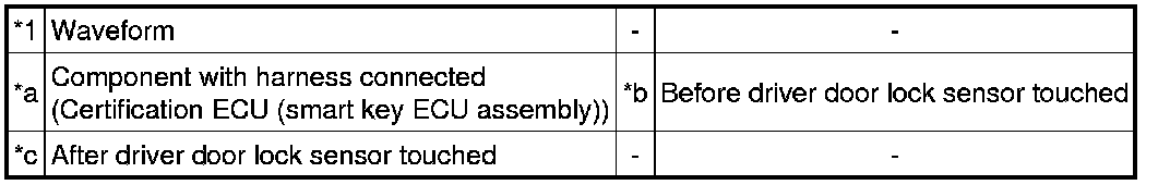 * The smart key system (for Entry Function) uses a multiplex communication system (LIN communication system) and the CAN communication system. Inspect the communication function by following How to Proceed with Troubleshooting How To Proceed With Troubleshooting. Troubleshoot the smart key system (for Entry Function) after confirming that the communication systems are functioning properly.