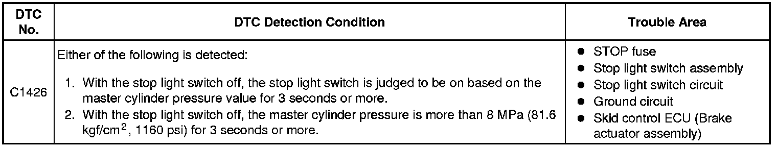 C1426 - Stop Light Switch OFF Stuck Malfunction