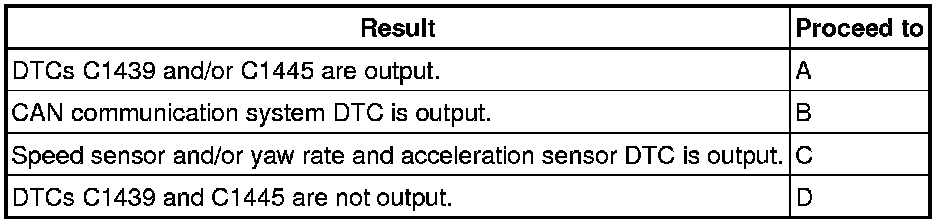 * When U0073, U0123 and/or U0126 is output together with C1439 and/or C1445, inspect and repair the trouble areas indicated by U0073, U0123 and/or U0126 first Vehicle Stability Control System.