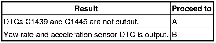 If DTC C1439 and/or C1445 is not output again, the DTC may have been stored due to a temporary loss of the steering angle zero point calibration, such as a loss of calibration due to the power source voltage being low.
