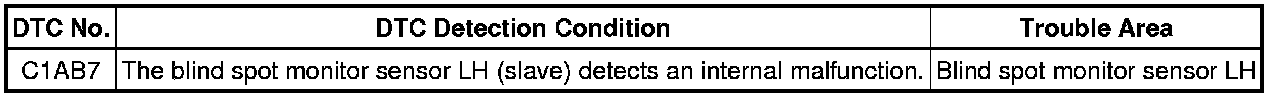 This DTC is stored when the blind spot monitor sensor LH detects an internal malfunction.