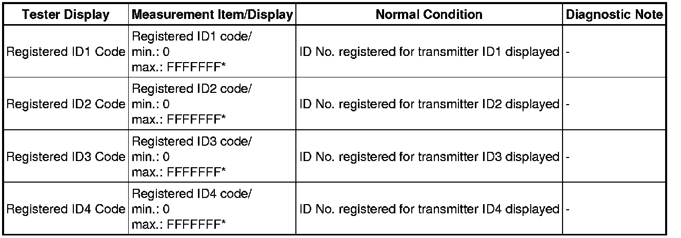 * Record the "ID Tire Inflation Pressure" data transmitter ID that corresponds to each tire.