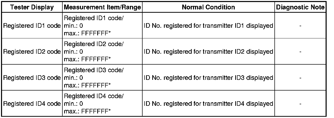 * Record the transmitter ID of which "ID Tire Inflation Pressure" data corresponds to each tire.