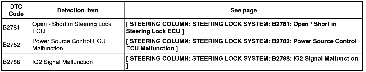 STEERING COLUMN: STEERING LOCK SYSTEM: DIAGNOSTIC TROUBLE CODE CHART