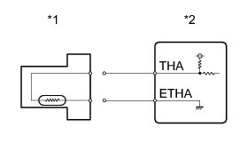 - Resistor R and the intake air temperature sensor are connected in series. When the resistance value of the intake air temperature sensor changes, the voltage at terminal THA varies accordingly. Based on this signal, the ECM increases the fuel injection volume when the engine is cold to improve driveability.