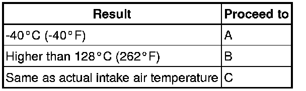 When DTC P0112 or P0113 is stored, the ECM enters fail-safe mode. During fail-safe mode, the intake air temperature is estimated to be 20°C (68°F) by the ECM. Fail-safe mode continues until a pass condition is detected.