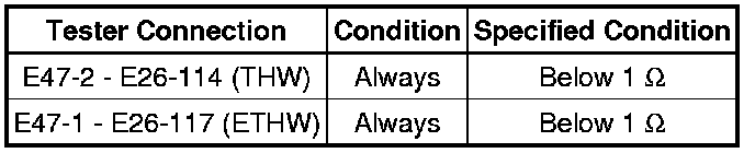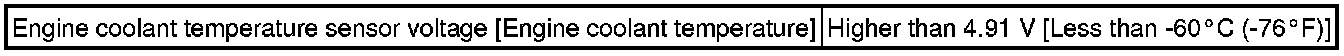 If the sensor output voltage is higher than 4.91 V for 0.5 seconds or more, the ECM determines that there is an open in the engine coolant temperature sensor circuit, and stores DTC P0118. Conversely, if the voltage output is less than 0.14 V for 0.5 seconds or more, the ECM determines that there is a short in the sensor circuit, and stores DTC P0117.