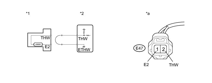 (b) Connect terminals 1 and 2 of the engine coolant temperature sensor connector on the wire harness side.