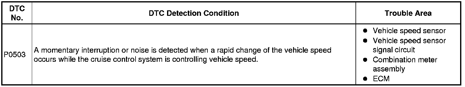 CRUISE CONTROL: CRUISE CONTROL SYSTEM: P0503: Vehicle Speed Sensor "A" Intermittent / Erratic / High