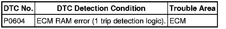 2GR-FE ENGINE CONTROL: SFI SYSTEM: P0604: Internal Control Module Random Access Memory (RAM) Error