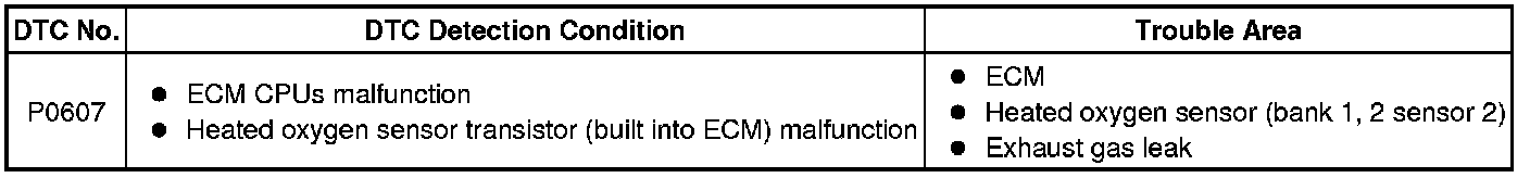 * If DTC P0607 and P0136, P0137, P0138, P0156, P0157 or P0158 are output, the output voltage of the heated oxygen sensor may remain close to 0 V or become high (around 1 V or higher).