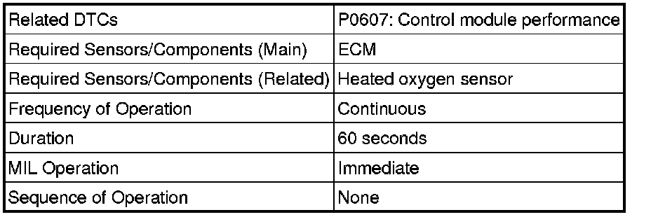 The ECM continuously monitors its internal processors (CPUs) and heated oxygen sensor transistors. This self-check ensures that the ECM functioning properly.