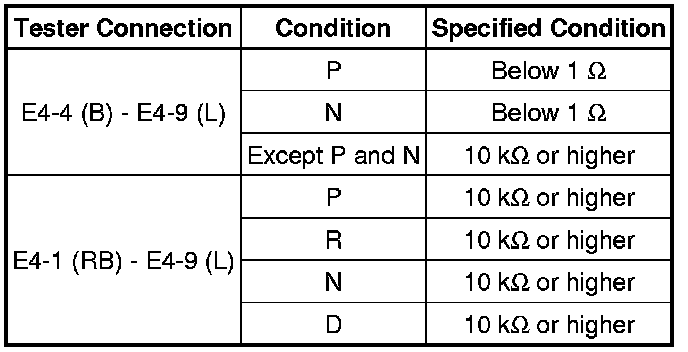 (b) Measure the resistance according to the value(s) in the table below when the shift lever is moved to each position.