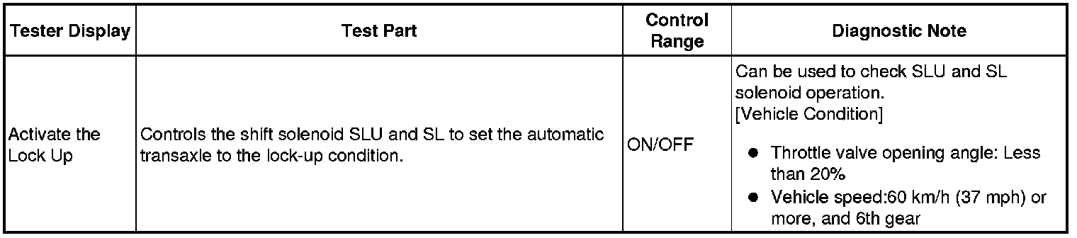 Then the TCM compares the engagement condition of the lock-up clutch with the lock-up schedule in the TCM memory to detect shift solenoid valve SL, valve body and torque converter clutch mechanical problems.