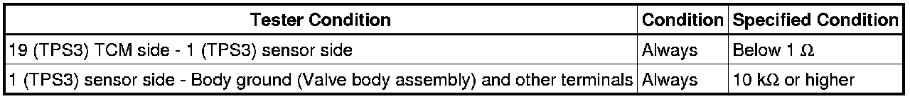 3. CHECK ATF TEMPERATURE SENSOR ASSEMBLY (ATF PRESSURE SWITCH NO. 3)