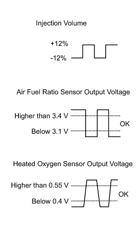* The air fuel ratio sensor has an output delay of a few seconds and the heated oxygen sensor has a maximum output delay of approximately 20 seconds.