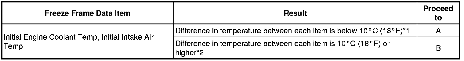 *: Use an actual outside temperature estimated from the Initial Intake Air, Ambient Temp for A/C, and (if possible) the weather when the DTC was detected.