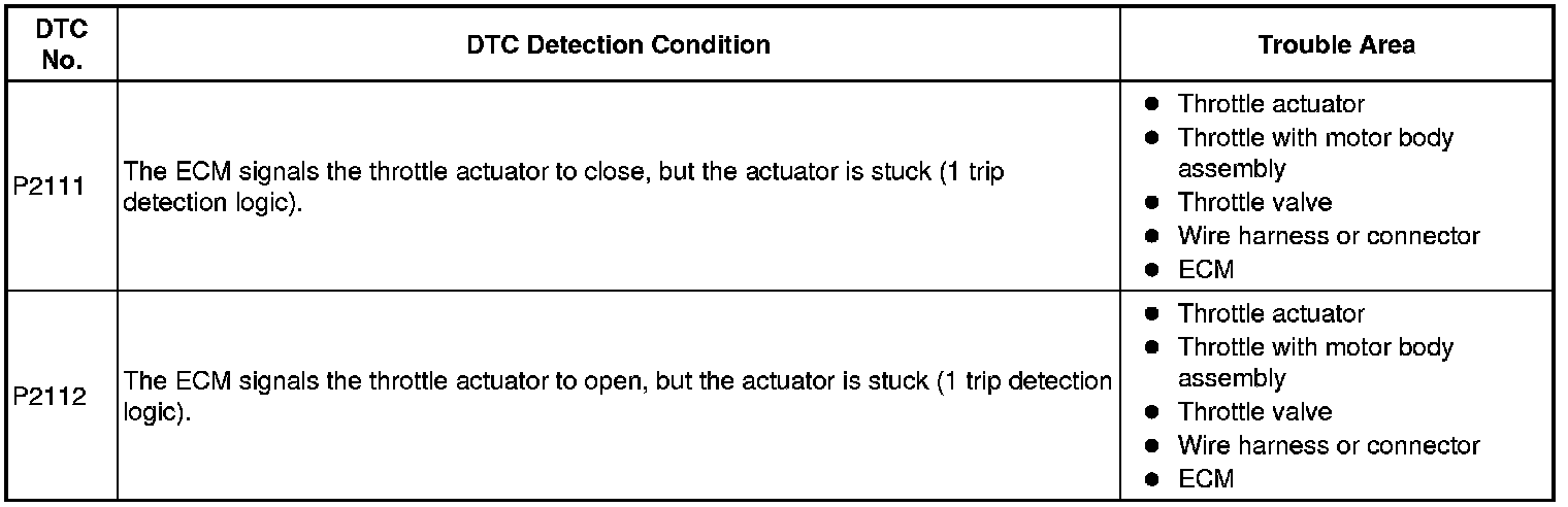 2GR-FE ENGINE CONTROL: SFI SYSTEM: P2111, P2112: Throttle Actuator Control System - Stuck Open