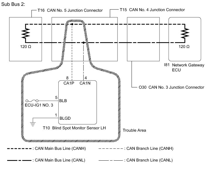 NG -- REPAIR OR REPLACE CAN BRANCH LINE OR CONNECTOR (BLIND SPOT MONITOR SENSOR LH)