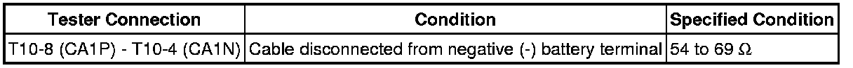 * Before measuring the resistance of the CAN bus, turn the ignition switch off and leave the vehicle for 1 minute or more without operating the key, switches or opening or closing the doors. After that, disconnect the cable from the negative (-) battery terminal and leave the vehicle for 1 minute or more before measuring the resistance.