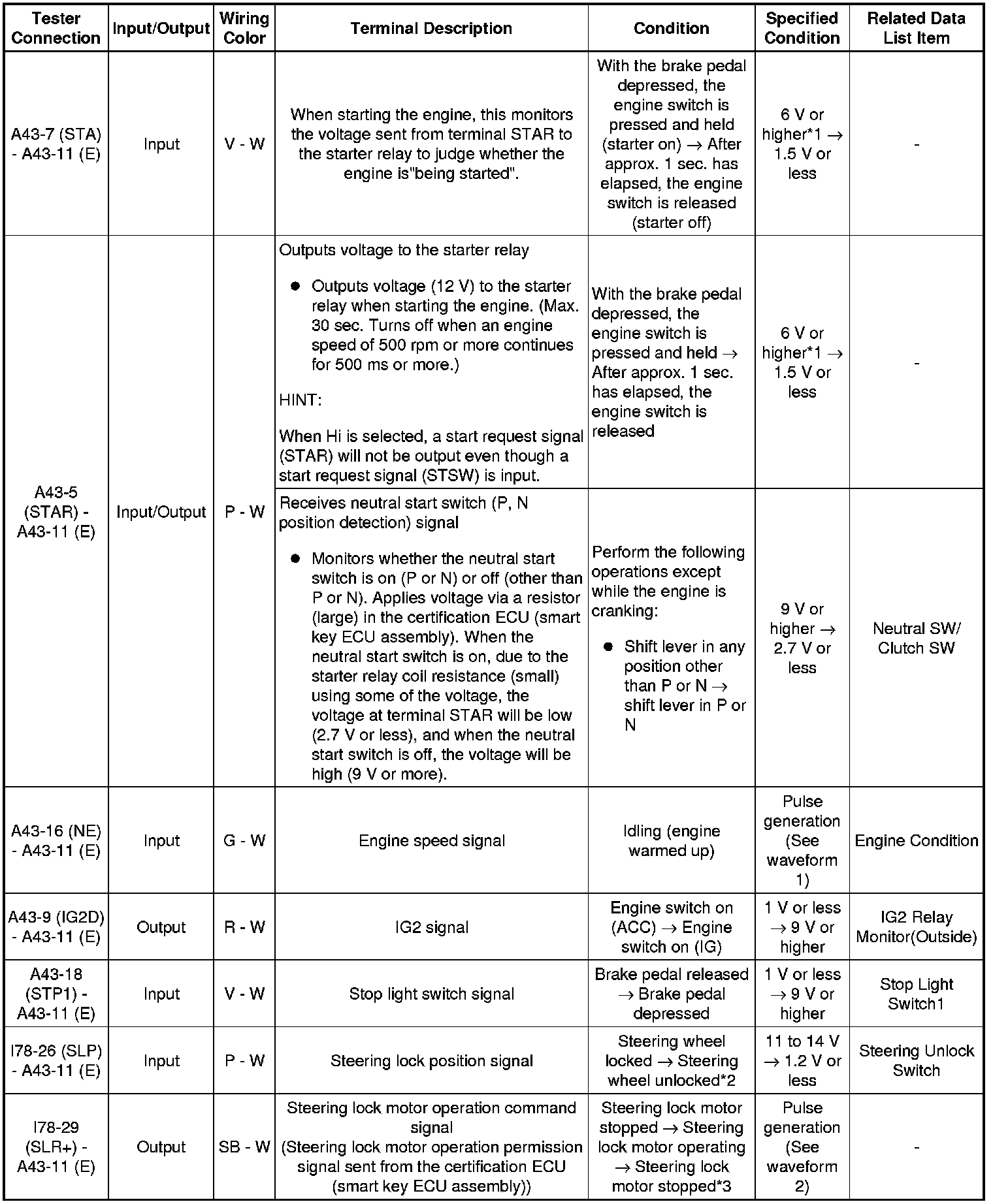 * *2: When the engine switch is turned off with the shift lever in P and any of the doors are opened or closed, the steering wheel will be locked. When the engine switch is turned on (ACC) or on (IG), the steering wheel will be unlocked.