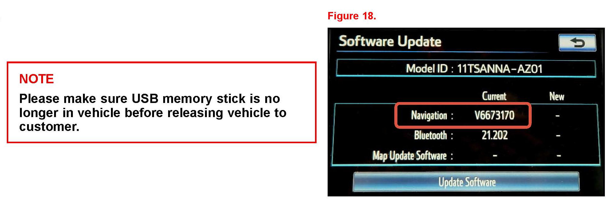 If AVN radio is currently in the "software update" screen, then proceed to step 8.