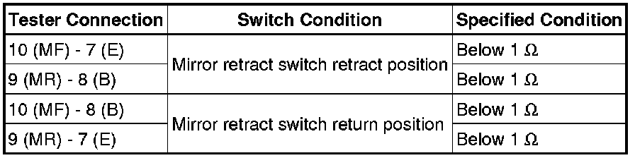 MIRROR (EXT): OUTER MIRROR SWITCH: INSPECTION