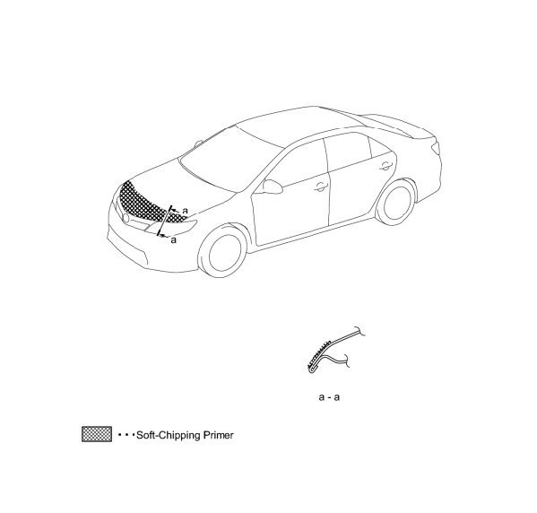 1. To protect the body from damage due to gravel, apply the anti-chipping paint to the hood.