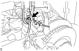 (c) Remove the bolt, front flexible hose and front speed sensor clamp together from the shock absorber assembly.