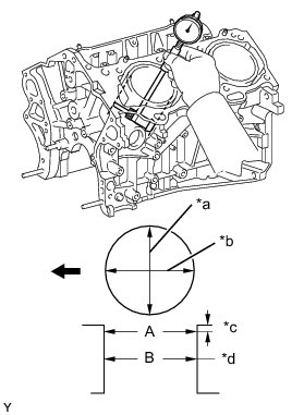 If the average diameter of 4 positions is greater than the maximum, replace the cylinder block sub-assembly.
