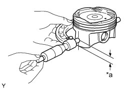 (a) Using a micrometer, measure the piston diameter at right angles to the piston center line where the distance from the piston end is as specified.
