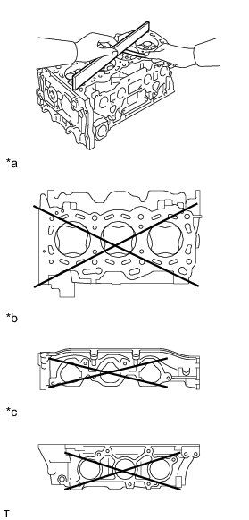 (a) Using a precision straightedge and feeler gauge, measure the warpage of the contact surface of the cylinder block sub-assembly and manifolds.