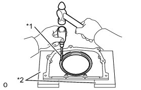 (b) Using a screwdriver and a hammer, tap out the oil seal.