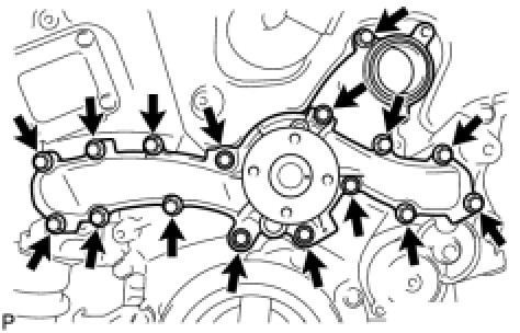 (a) Remove the 16 bolts, engine water pump assembly and water pump gasket.