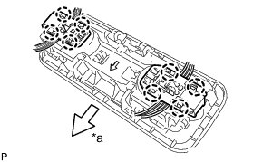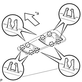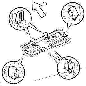 (a) Align the switch parts shown in the illustration and engage the 4 claws to install the room light switch base to the No. 1 room light housing.