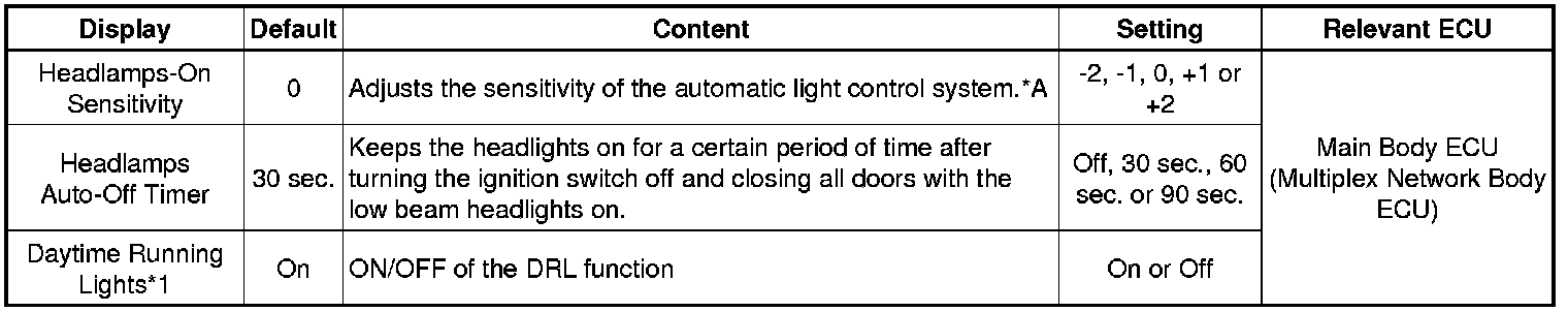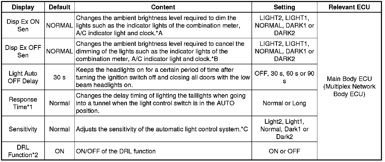(2) Enter the following menus: SETUP / Vehicle / Vehicle Customization / Light Settings.