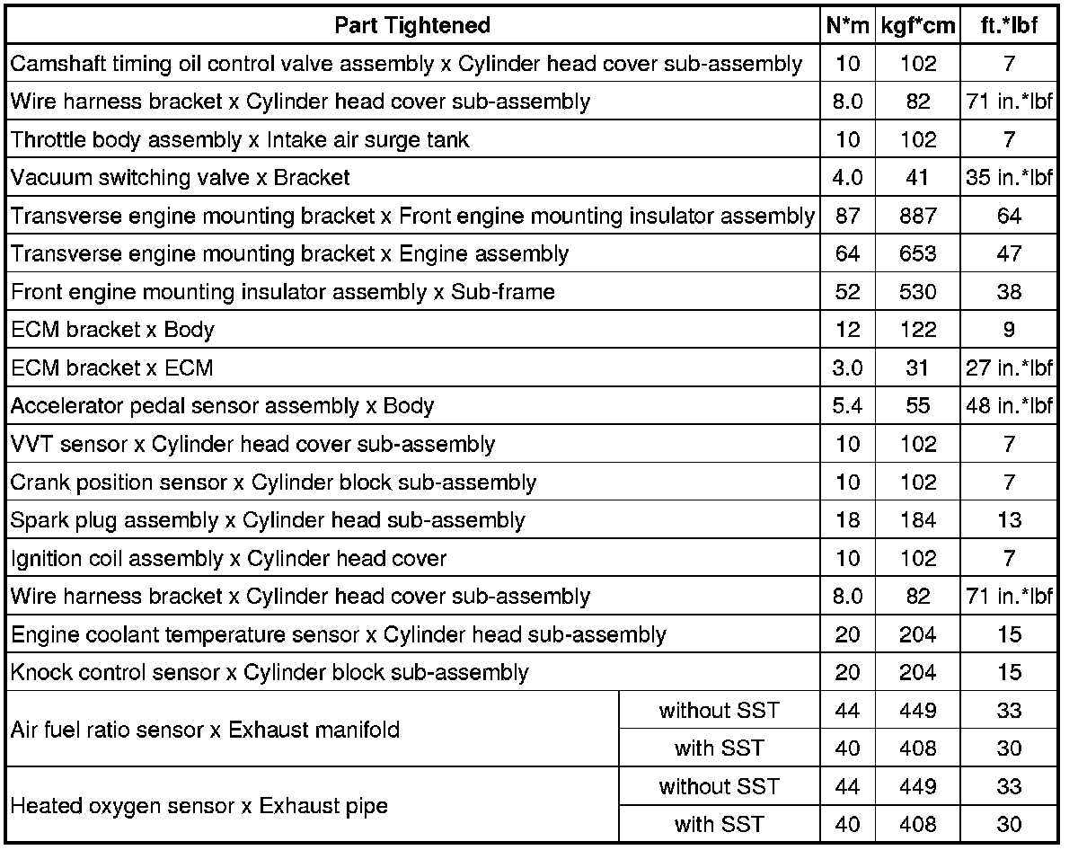 SPECIFICATIONS: 2GR-FE ENGINE CONTROL: TORQUE SPECIFICATIONS
